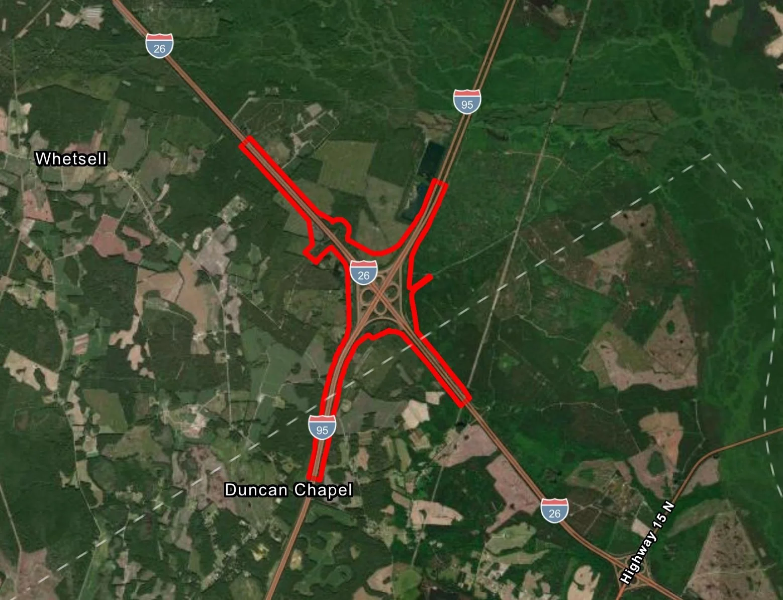 SCDOT proposes to improve the I-26 and I-95 interchange in Dorchester and Orangeburg Counties. The interchange is located at Exit 169 A/B along I-26 and Exit 86 A/B along I-95, approximately 8 miles east of Bowman and 11 miles west of Holly Hill. The interchange is located in Orangeburg County; however, project limits will tie into I-26 and extend slightly into Dorchester County.