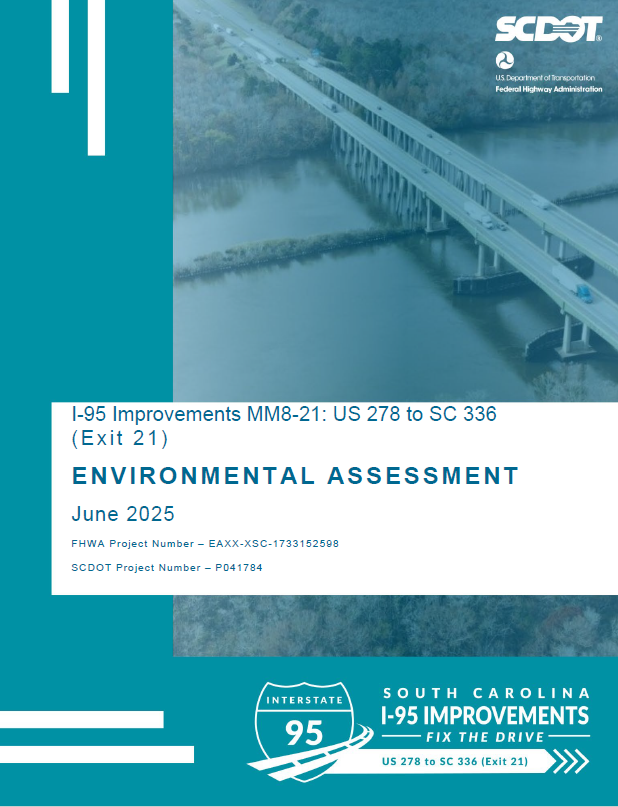 An in-person public hearing on the proposed I-95 improvements from US 278 (Exit 8) to SC 336 (Exit 21) was held on Thursday, September 11, 2025. The materials shared at the meeting are available below.